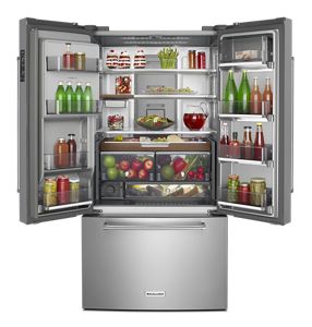 The largest capacity counter-depth refrigerator in its class features PrintShield™ finish to resist fingerprints outside and flexible storage options inside. A slide-away shelf retracts to fit tall items, and full-extension self-close crispers and custom temperature pantry let you store more and find it easily. Plus, the Preserva®Food Care System with Linear Compressor helps keep it all at the peak of freshness.
