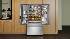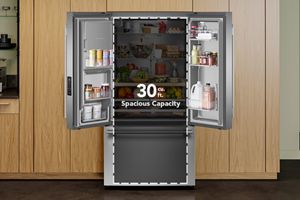 from this impressively large French Door Refrigerator makes room for every farmer's market haul and brings convenience with customizable storage spaces for your unique ingredients.