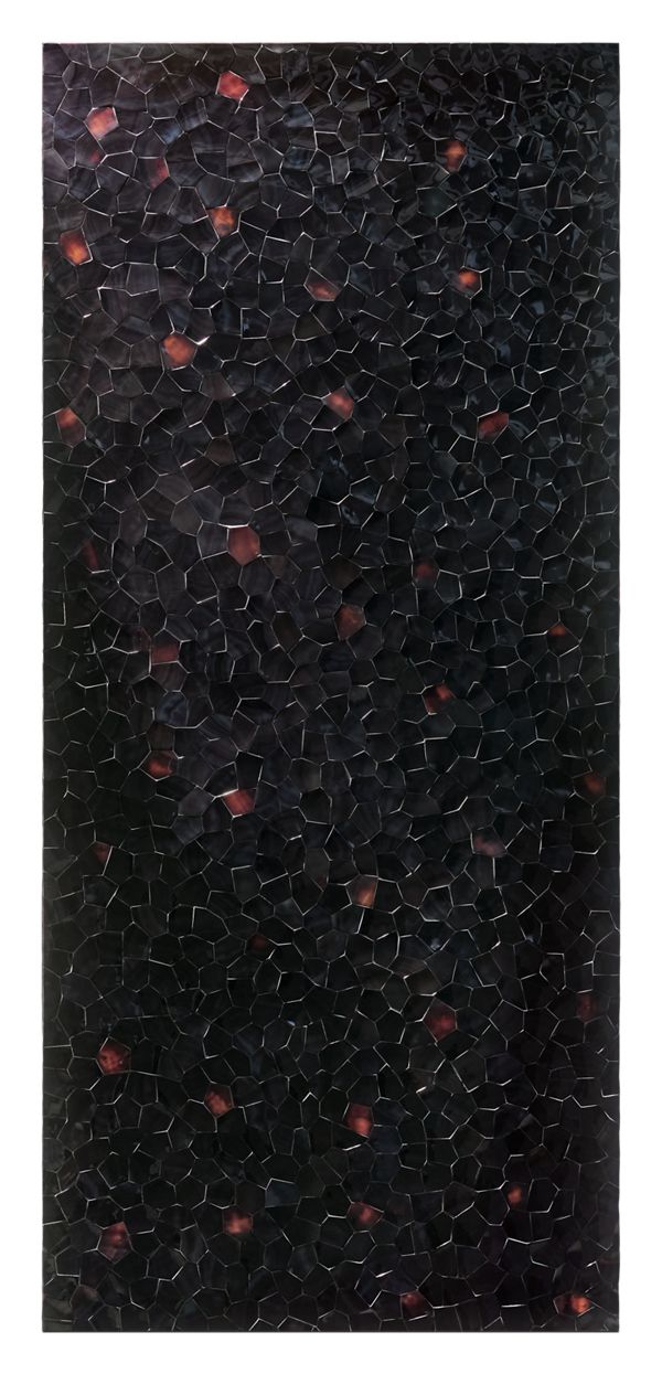 A skillfully crafted panel made in collaboration with Nature Squared and designed to fit on a JennAir® Column. Formed from the smooth interior of the dark pen shell, this panel radiates tones of crimson, brown and black.