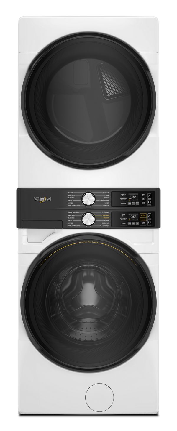 This single-unit front load laundry tower features easy-to-reach controls and the FreshFlow™ Vent System with Industry-First UV Clean. Keep your clothes and washer fresh, now with the added benefit of UV light technology that reduces bacteria in the wash without requiring high temps or fading fabrics. Simplify your laundry routine with intelligent wash and dry technology that senses and makes automatic adjustments for ideal cleaning performance and to prevent clothes from overdrying.
