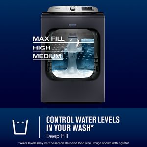 With every laundry cycle, Maytag brand delivers powerful cleaning with the Power™ agitator to break apart stains on your dirty clothes. Use Extra Power for boosted stain fighting on any wash cycle, while the Deep Fill option delivers more water when you want it with your choice of deeper water levels.* Plus, smart features help you stay in control and efficiently manage laundry from anywhere.** Use the Maytag™ app to remotely start or stop your appliance and get end of cycle notifications.