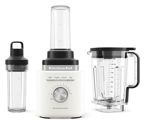 The KitchenAid Pure Power Blender helps craft the blends you want with a precision speed control knob. Use the 10 preset speeds, or simply twist the control knob to smoothly glide between speeds, finding the exact setting for your desired texture. Customize your batch with the 68 oz (2L) plastic jar for making plenty at once, or the Personal Blender Jar for a travel-friendly single serving.