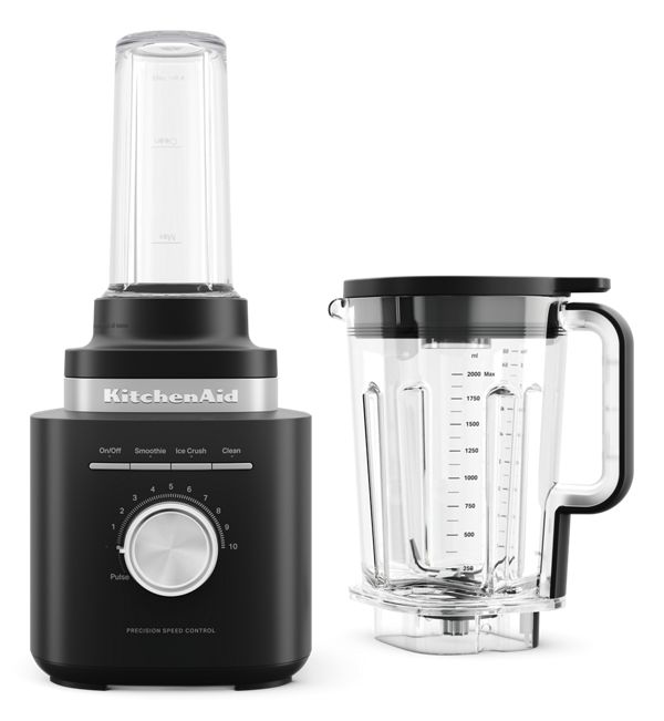 The KitchenAid Pure Power Blender helps craft the blends you want with a precision speed control knob. Use the 10 preset speeds, or simply twist the control knob to smoothly glide between speeds, finding the exact setting for your desired texture. Customize your batch with the 68 oz (2L) plastic jar for making plenty at once, or the Personal Blender Jar for a travel-friendly single serving.