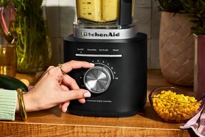 The KitchenAid Pure Power Blender comes with a 68oz plastic jar and a 62oz glass jar to help craft the blends you want with a precision speed control knob. Use the 10 preset speeds, or simply twist the control knob to smoothly glide between speeds, finding the exact setting for your desired texture.